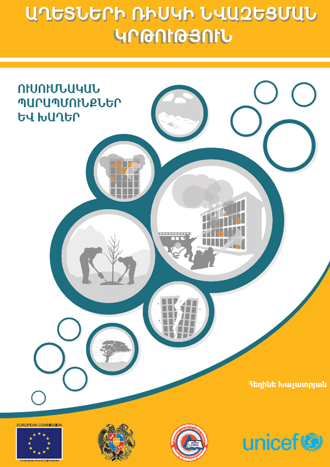 Աղետների ռիսկի նվազեցման կառավարումՍույն ձեռնարկը նախատեսված է նախադպրոցական հաստատությունների սաների և հիմնական դպրոցի աշակերտների՝ աղետների ռիսկի նվազեցման (ԱՌՆ) կրթության կազմակերպման համար: Այն ներառում է ուսումնասիրելու, պատմելու, քննարկելու, համագործակցելու և իրականացնելու տարատեսակ առաջադրանքներով ԱՌՆ պարապմունքներ, ուսումնական խաղեր և շարժախաղեր: Առաջադրանքները կազմված են այնպես, որ երեխաները կարողանան հնարավորինս ինքնուրույն կատարել դրանք:
