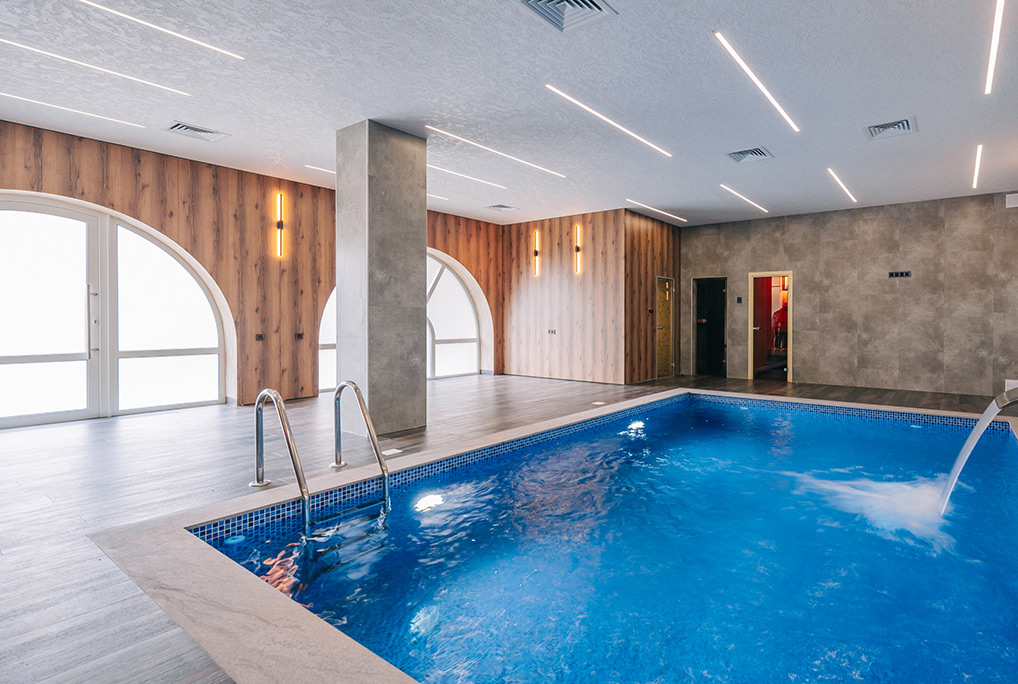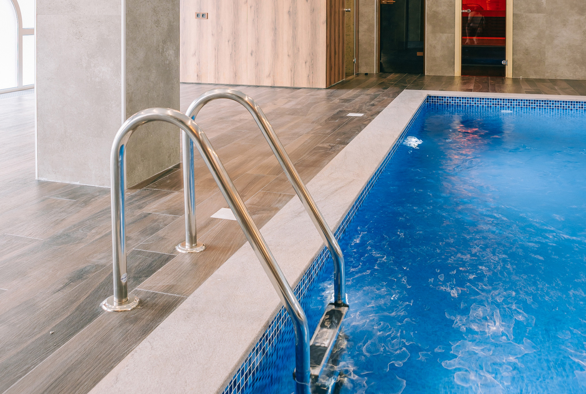 Our indoor 6x4 metre pool with adjustable temperature is perfect for both relaxation and keeping fit.